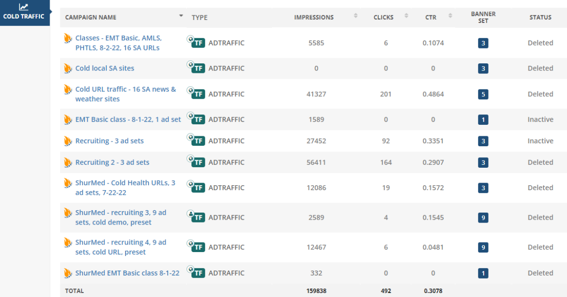 Results From Outbound Ad Campaigns (Cold Traffic)